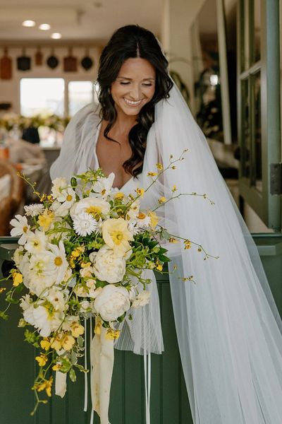 Toni's favorite and most meaningful flower is the straw flower in memory of her Oma. They are known to represent immortality and someone or something that is “always remembered”. In this, they came to be of ever more powerful meaning. Toni described her desired bouquet as wild, offset, sohpisticated, unpretentious and unique; in pale yellow and white flowers. The palette evolved with stunning white peonies, oncidum orchids, yellow poppies, white cosmos, yellow columbine, daisies and wilflowers.